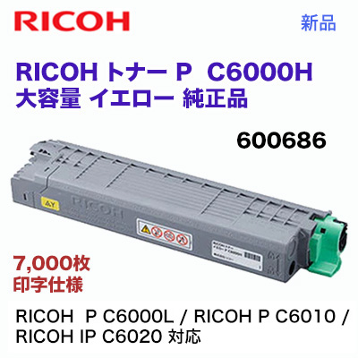 リコー P C6000H イエロー 大容量 純正トナー・新品 600686(A3カラープリンタ RICOH P C6000L ,RICOH IP C6020, RICOH P C6010 対応)