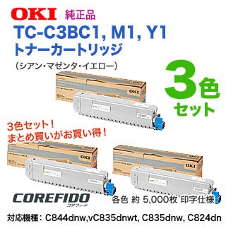【純正品 3色セット】 OKIデータ/沖データ TC-C3BC1, M1, Y1 (青・赤・黄) トナーカートリッジ 新品 【送料無料】