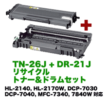(セットでお得!)ブラザー対応 TN-26J+DR-21J リサイクルトナー&ドラムユニットのセット (HL-2140, 2170W/DCP-7030, 7040/MFC-7340, 7840W 対応)