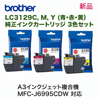 【3色セット】ブラザー工業 LC3129C, M, Y (青・赤・黄)純正インクカートリッジ (A3インクジェット複合機 MFC-J6995CDW 対応)【★代引決済不可】