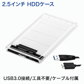 ※注意:代引決済不可【新品】2.5インチ HDD / SSD ケース USB 3.0接続 SATA (カラー:クリア) 工具不要(送料無料)HDCSC