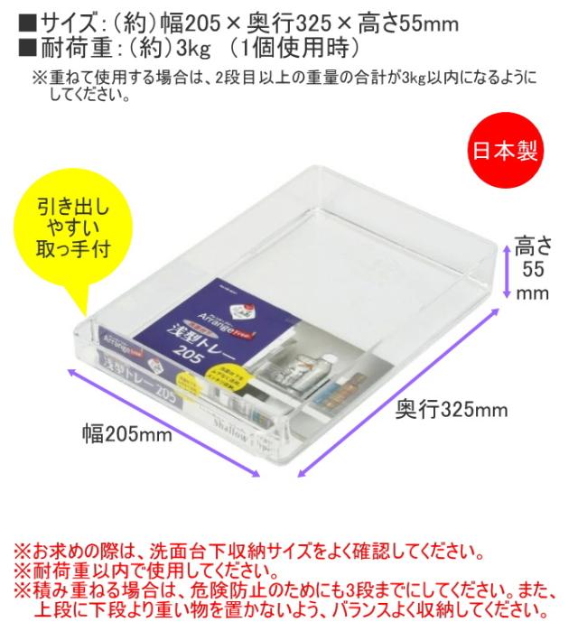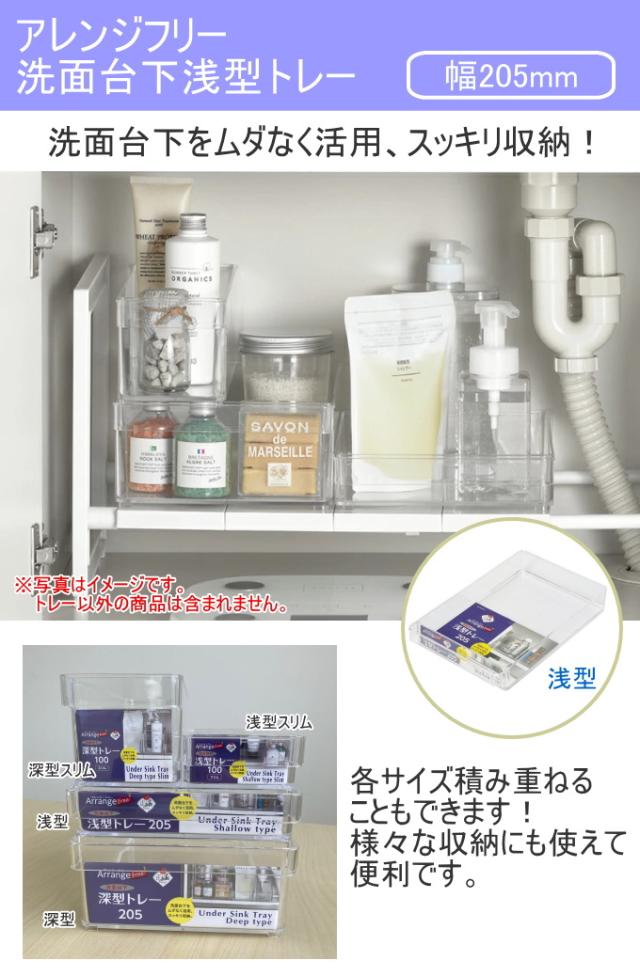 アレンジフリー 洗面台下浅型トレー205 1個 HB-6047 日本製 浅型 洗面台下 収納 ケース 透明 クリア 収納用品