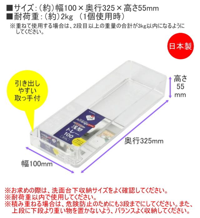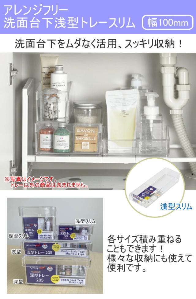アレンジフリー 洗面台下浅型トレー100 スリムタイプ 1個 HB-6048 日本製 浅型 スリム 洗面台下 収納 ケース 透明 クリア 収納用品