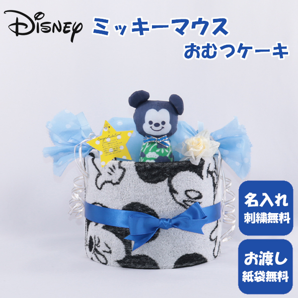おむつケーキ 出産祝い ミッキーマウス 1段 おむつキャンディ 名入れ刺繍 ダイパーケーキ 誕生日祝い ベビーシャワー
