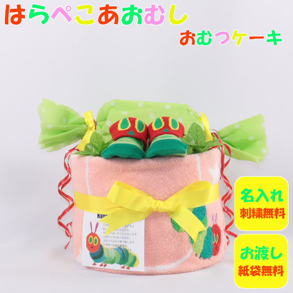 おむつケーキ 出産祝い はらぺこあおむし ピンク 1段 おむつキャンディ 名入れ刺繍 ダイパーケーキ 誕生日祝い ベビーシャワー