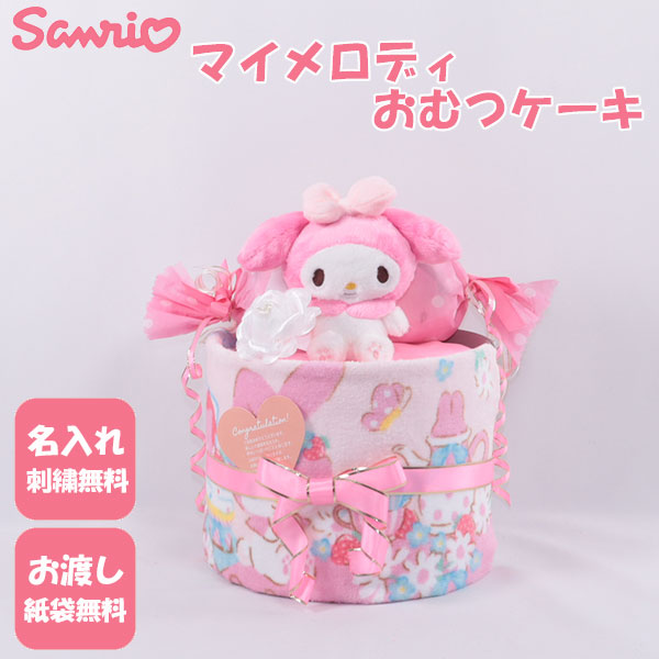 おむつケーキ 出産祝い サンリオ マイメロディ 1段 おむつキャンディ 名入れ刺繍 ダイパーケーキ 誕生日祝い ベビーシャワー