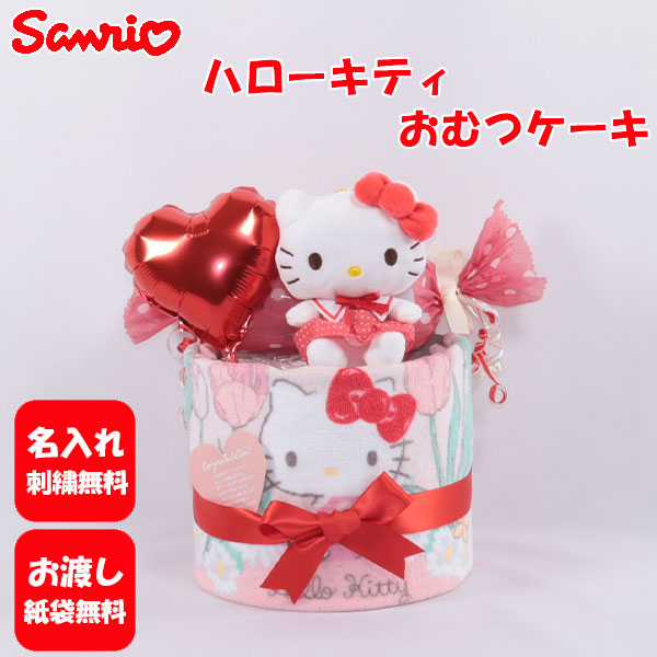 おむつケーキ 出産祝い サンリオ ハローキティ 1段 おむつキャンディ 名入れ刺繍 ダイパーケーキ 誕生日祝い ベビーシャワー