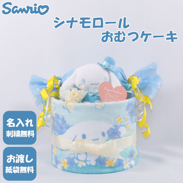 おむつケーキ 出産祝い サンリオ シナモロール 1段 おむつキャンディ 名入れ刺繍 ダイパーケーキ 誕生日祝い ベビーシャワー