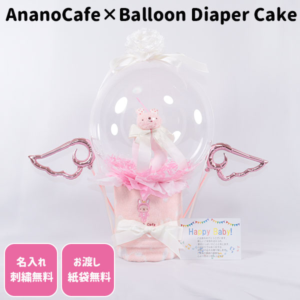 おむつケーキ 出産祝い アナノカフェ バルーン ラトル 天使 名入れ刺繍 ダイパーケーキ 誕生日祝い ベビーシャワー