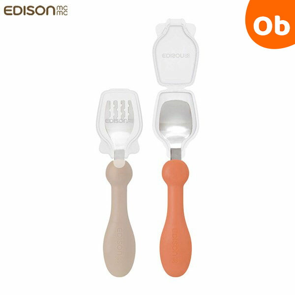 じぶんでぱくぱく フォーク&スプーン プチ カバー付 テラコッタ ケイジェイシー EDISONmama【ネコポス送料無料】