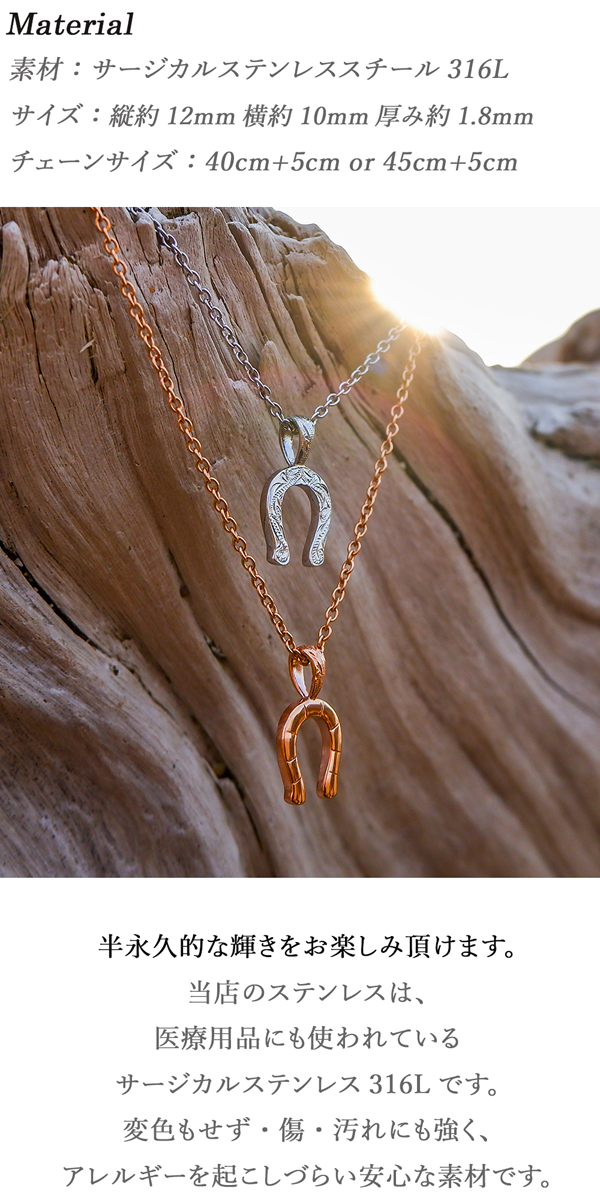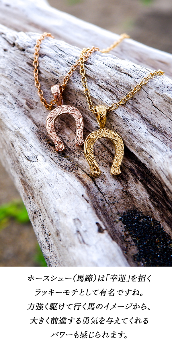 ハワイアンジュエリー ネックレス ホースシュー 馬蹄 波 スクロール BOX 金属アレルギー対応 サージカル ステンレス ギフト インスタ sale ラッピング対応