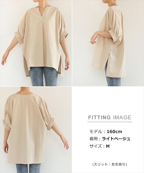 送料無料 ワッシャーコットン 袖ギャザー スキッパー ブラウス レディース プルオーバー シンプル 体型カバー 春 夏 秋 オフィスカジュアル かわいい お出かけ デート 楽ちん ゆったり Ladies 20代 30代 40代