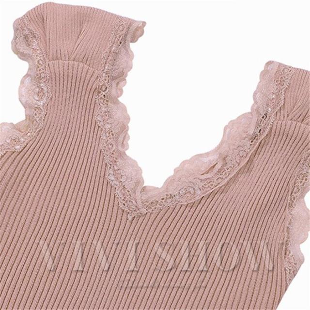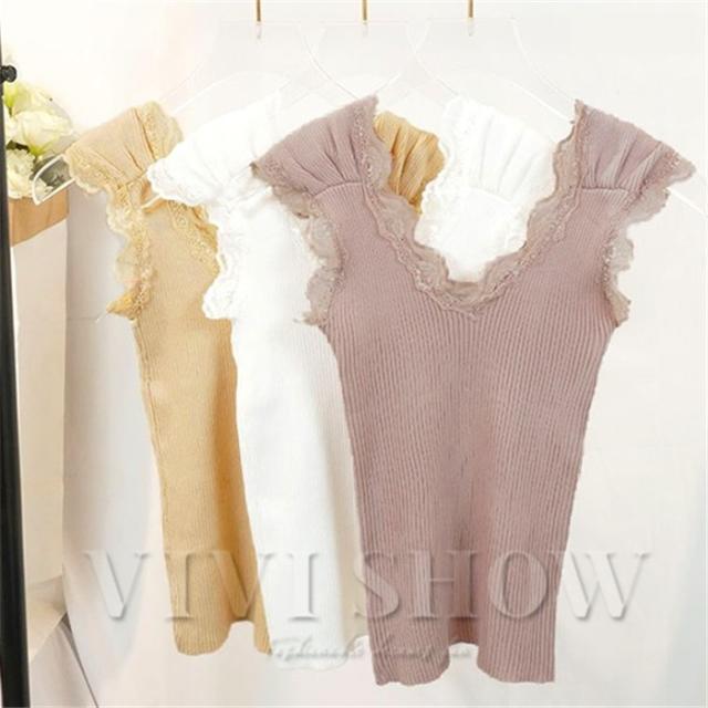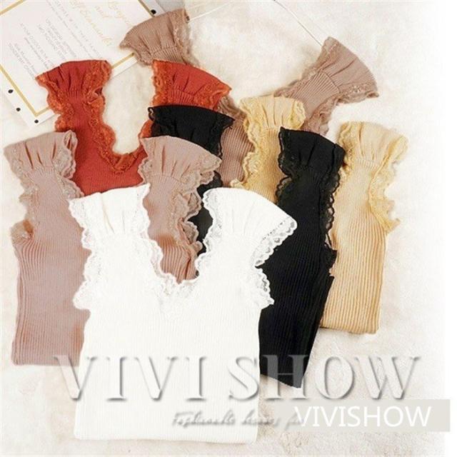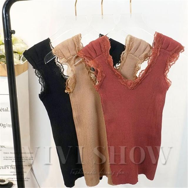 キャミソール レディース 韓国 リブキャミソール レースキャミソール vivishow