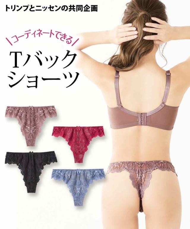 グラマーさんに人気のフルカップブラにコーディネートできるTバックショーツができました。総レースで華やかなデザインでコーディネートを楽しめます。