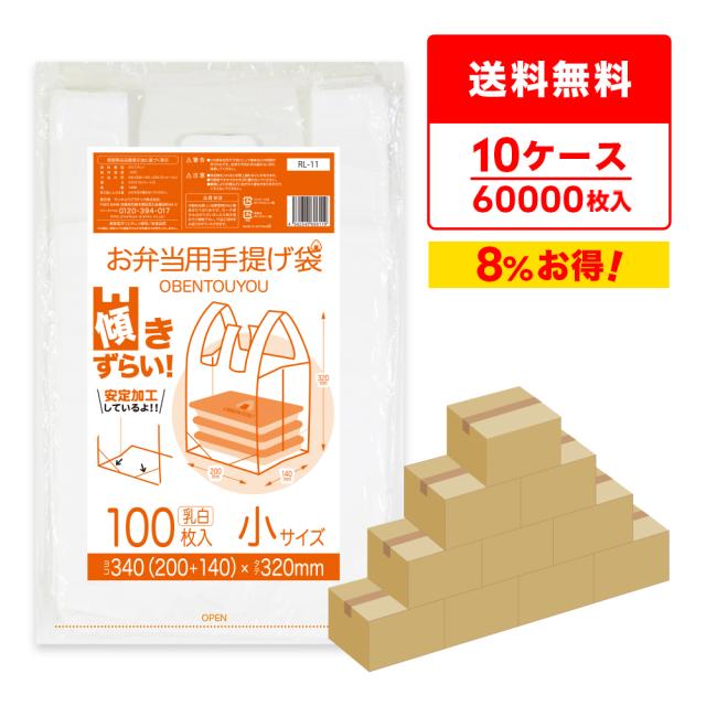 【まとめて10ケース】RL-11-10 傾きずらい お弁当用手提げ袋 小サイズ 0.012mm 乳白 100枚x60冊x10箱/弁当袋 手提げ袋 送料無料