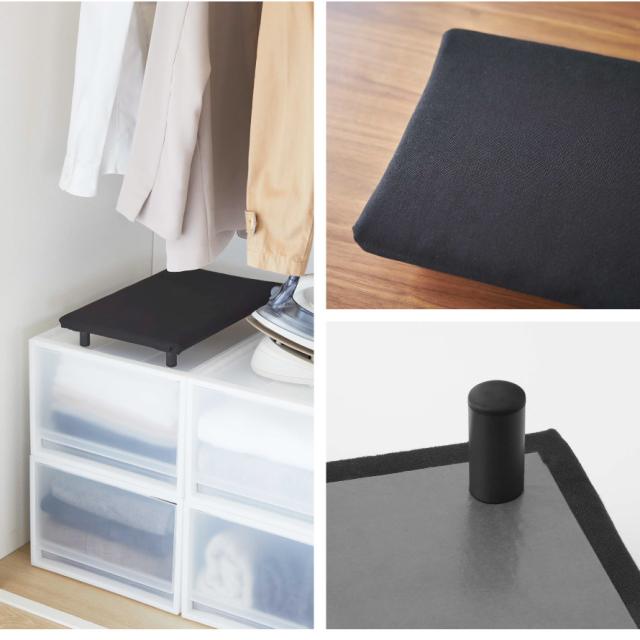 3層構造で机を傷めない!平型脚付アイロン台。卓上でスチームアイロンが快適に掛けられる、すべらない脚付きアイロン台。