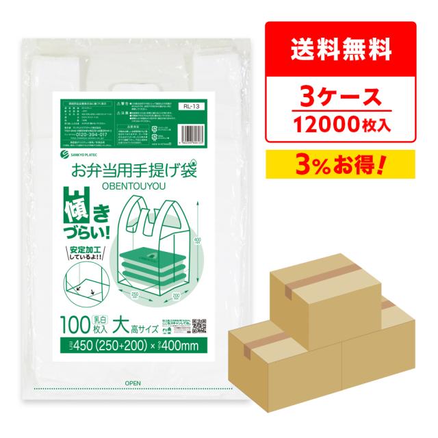 【まとめて3ケース】RL-13-3 傾きずらい お弁当用手提げ袋 大高サイズ 0.014mm厚 乳白 100枚x40冊x3箱/弁当袋 手提げ袋 送料無料