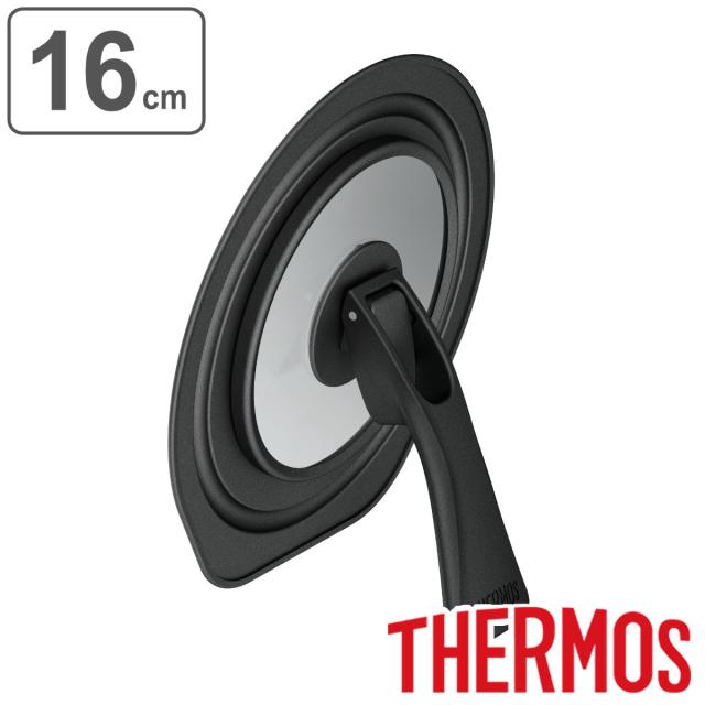 サーモス 折りたたみスタンド式蓋 16cm用 フライパン 鍋 キッチンプラス ( THERMOS フライパン蓋 ガラス蓋 鍋蓋 鍋フタ 鍋ふた カバー 自立 立つ 16センチ フッ素加工 お手入れ簡単 ガラス窓 便利 コンパクト 収納 )