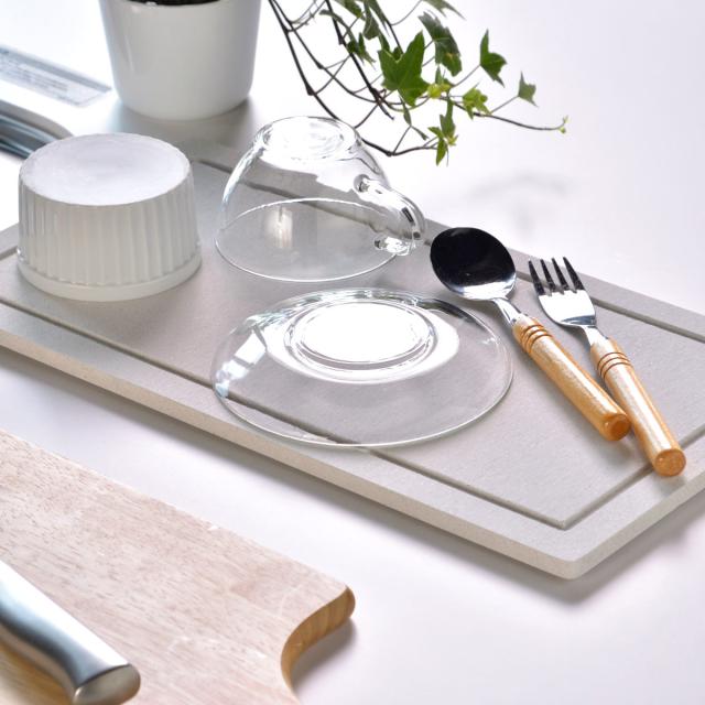 モイストレイは洗い物から落ちた水滴をサッと吸収し、徐々に空気中に放出してくれます。水が溜まらないのでシンクに流す手間が省ける上、水垢やぬめりが付く心配もなく、お手入れが簡単です。