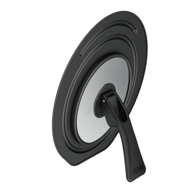 サーモス 折りたたみスタンド式蓋 18・20cm用 フライパン 鍋 キッチンプラス ( THERMOS フライパン蓋 ガラス蓋 鍋蓋 鍋フタ 鍋ふた カバー 自立 立つ 18センチ 20センチ フッ素加工 お手入れ簡単 ガラス窓 便利 コンパクト 収納 )