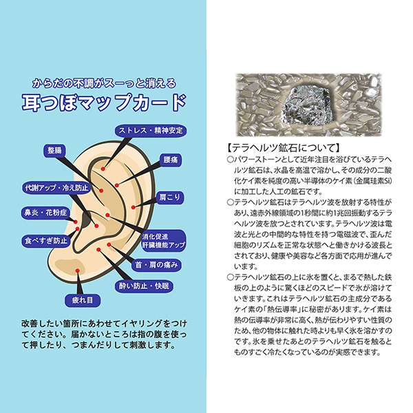 つぼの位置が一目でわかる耳つぼマップカード付きです。
