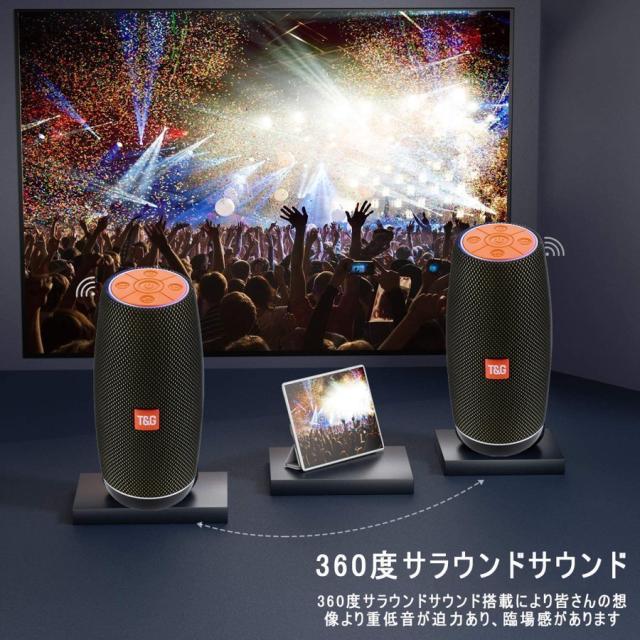 Bluetooth 5.0 ワイヤレススピーカー 360°サウンド 重低音強化 5W大出力 IPX7完全防水 USB-C急速充電 インドア・アウトドアサウンドモード PSE認証済み