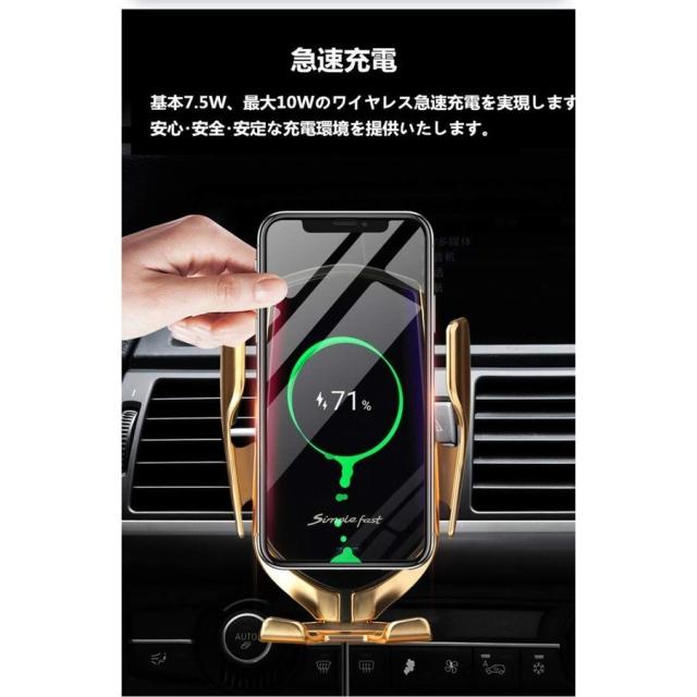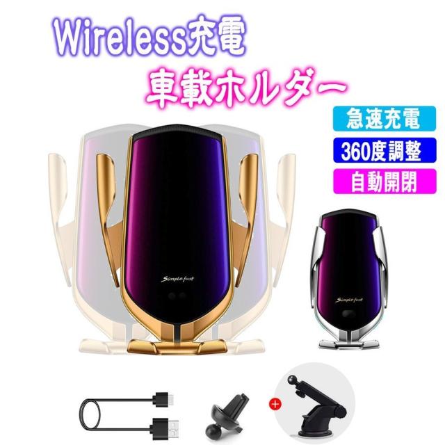 当日発送 車載Qi ワイヤレス充電器 車載 ホルダー 赤外線センサーによる自動開閉 エアコン吹き出し口用 360度回転 インチスマホ適用 モバイル 急速 PSE認証済み