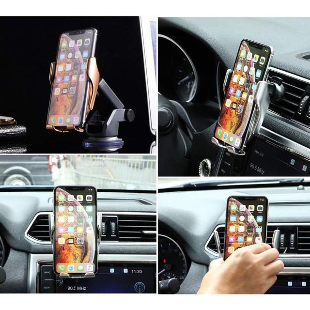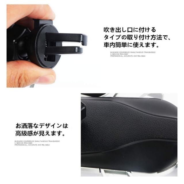 【車載式のホルダー&ワイヤレス充電器】充電器だけではなく、スマホホルダーにもなって、一石二鳥です。吹き出し口に付けるタイプの取り付け方法で、車内簡単に使えます。強化された両アームがスマホをしっかりホールドしてくれます。