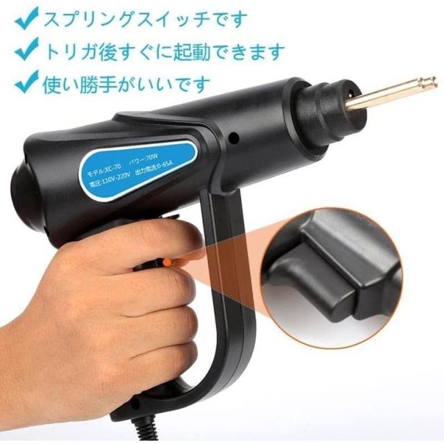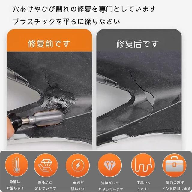 当日発送 プルプラスチック 溶接機 PSE認証済み 70W カーバンパー 修理キット、バンパー リペア プラスチック 溶接ガン 収納箱付き 4種類フラット