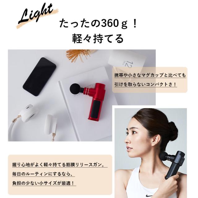 本体重量360gで軽々持てる筋膜リリースガン。