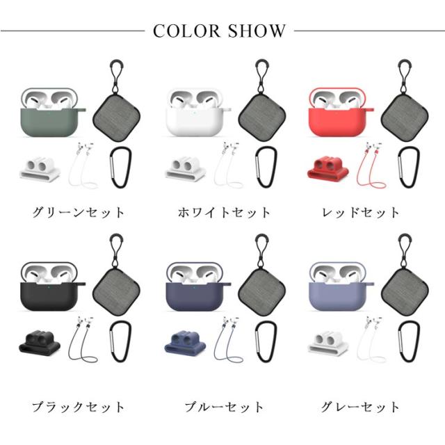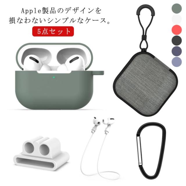 ワイヤー充電可 Air Pods Pro ケース 5点セット 送料無料 airpods3 airpods Pro 収納ケース シリコン おしゃれ アップル ストラップ カバー アクセサリー 紛失防止 収納ホルダー カラナビ キズ防止 耐衝撃 イヤホンケース ソフトケース 落下防止 小物収納 ケース 全面保護