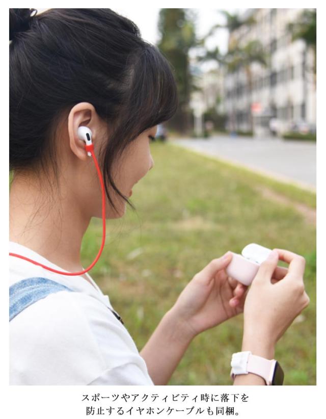 | Apple製品のデザインを損なわないシンプルなケース。 蓋と本体が繋がっている仕様なので、充電ケース蓋はスムーズに開閉できます。 蓋の裏地には滑り止め加工を施し、AirPods Pro本体が落下するのを防ぎます。 弾力性・耐衝撃性・柔軟性に優れた高品質のシリコン素材を使用。 落下による衝撃をしっかり吸収し、AirPods Pro本体を傷や汚れから保護します。 スポーツやアクティビティ時に落下を防止するイヤホンケーブルも同梱。 本体ケースと同じシリコン素材を採用し、柔軟性と軽量性を考慮した設計になっています。 肌に優しく、首周りが窮屈にならないようになっています。 おしゃれで柔らかく長時間の着用でも快適です。 耐久性も高く頑丈で、お使いのAirPods Proをしっかりと守ります。 AirPods Proをスマートウォッチのベルトに固定できるヘッドホンホルダーも同梱されています。 少し外したい時に腕時計に固定することで紛失のリスクを減らします。 付け外し可能なカラビナが同梱。 バッグやベルトに装着可能です。大切なAirPods Proを無くしてしまう心配が軽減されます。 AirPods Pro やイヤホンなど、どこにしまったか分からなくなる小物の収納に便利です。 不意の落下と紛失を防止します。 | |