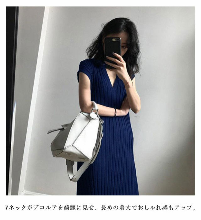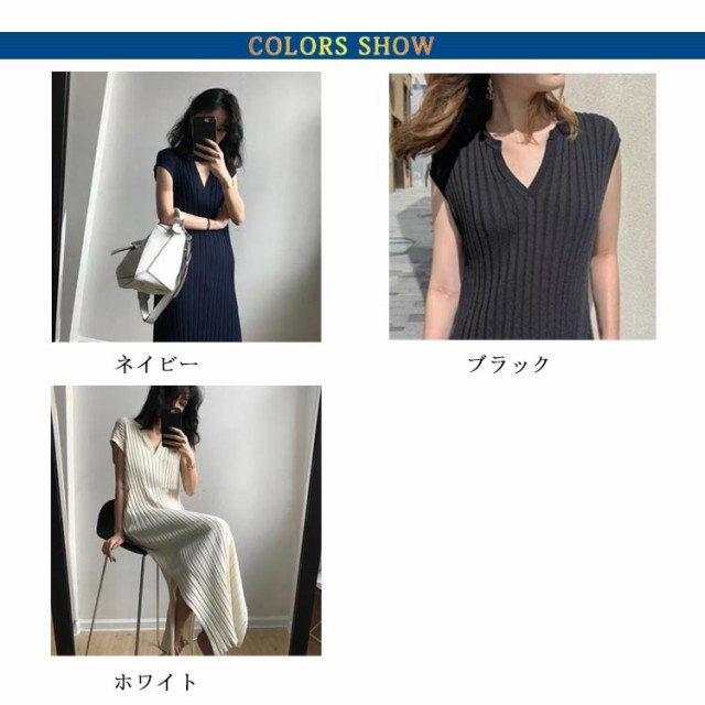 送料無料 リブニット ワンピース Vネック タイトワンピース レディース サマーニット リブニット 半袖 フレンチスリーブ Iライン スリム シンプル ロング丈 サイドスリット タイト 大人 可愛い セクシー おしゃれ カジュアル オフィス