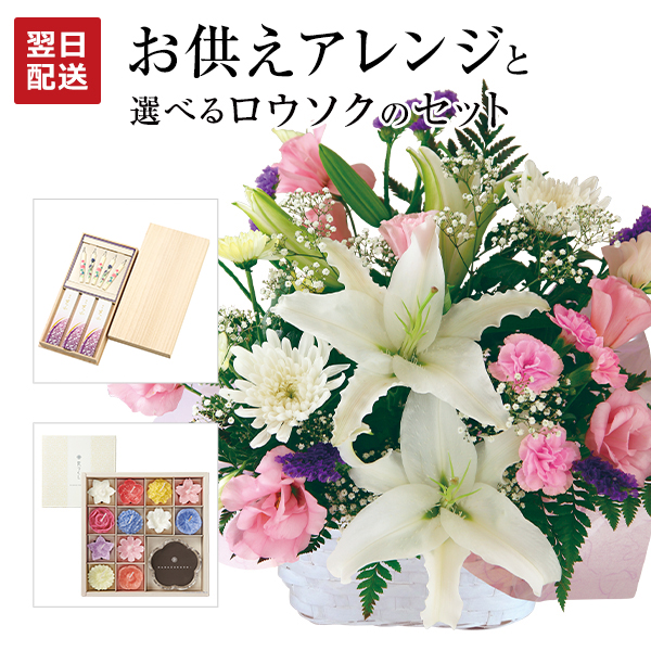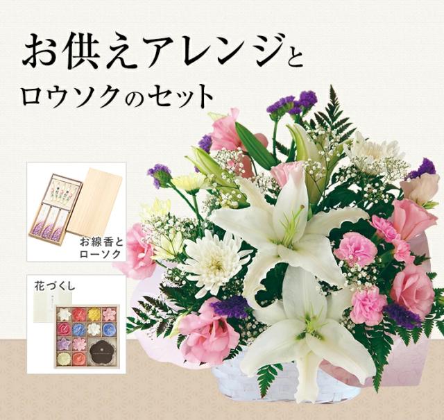 お供え 花 初盆 線香セット 線香 セット 生花 アレンジメント 日本香堂 お線香 絵ローソク カメヤマ ローソクお悔やみ 四十九日 ペット