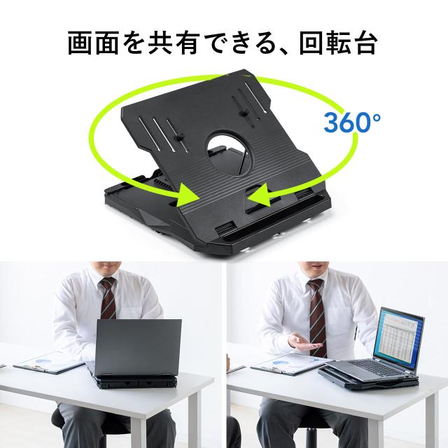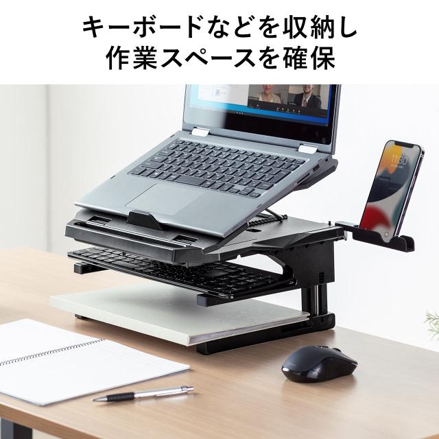 ノートパソコンスタンド 折りたたみ 高さ変更 角度調整対応 360度回転 姿勢改善 スマホスタンド内蔵[100-CR017]