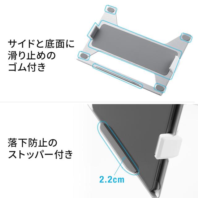 ●挟み込み式なのでノートパソコン、タブレットを挟み込んでお使い頂けます。(横幅29〜46cm、耐荷重3kgまで)