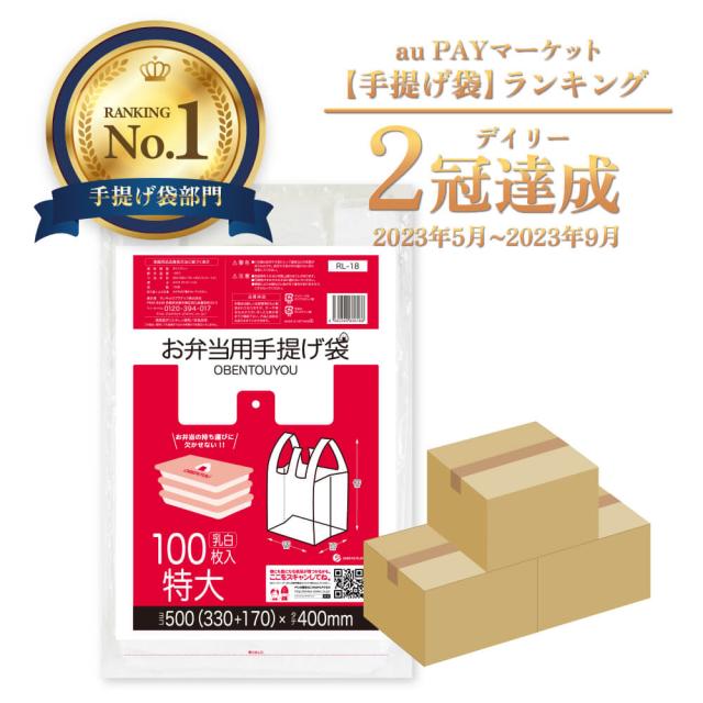 【まとめて3ケース】RL-18-3 お弁当用手提げ袋 特大サイズ 0.014mm厚 乳白 100枚x40冊x3箱/弁当袋 手提げ袋 送料無料