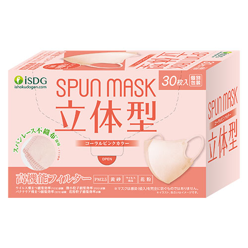 ISDG 医食同源 立体型スパンレース不織布カラーマスク(コーラルピンク)30枚入 医食同源ドットコム 使い捨て カラーマスク ISDG 不織布 日本製 ふつうサイズ 不織布マスク 使い捨てマスク 抗菌 防臭 国産 花粉 高性能 3層フィルター