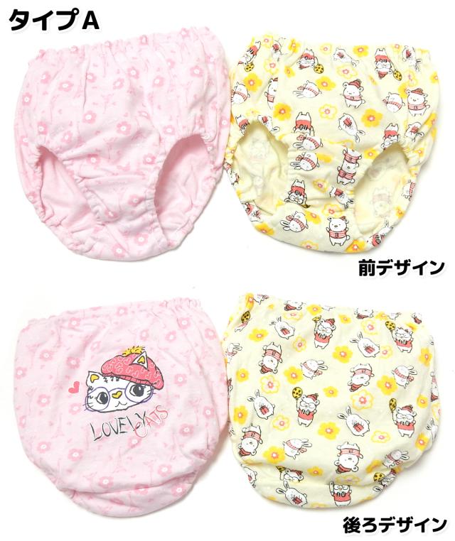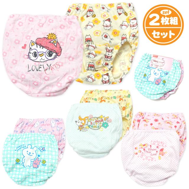【送料無料】2枚組セット 女児 キッズ ショーツ 綿混 ねこ うさぎ クマ シカ 木馬 下着 子供 女の子 yg-1464【メール便対応】