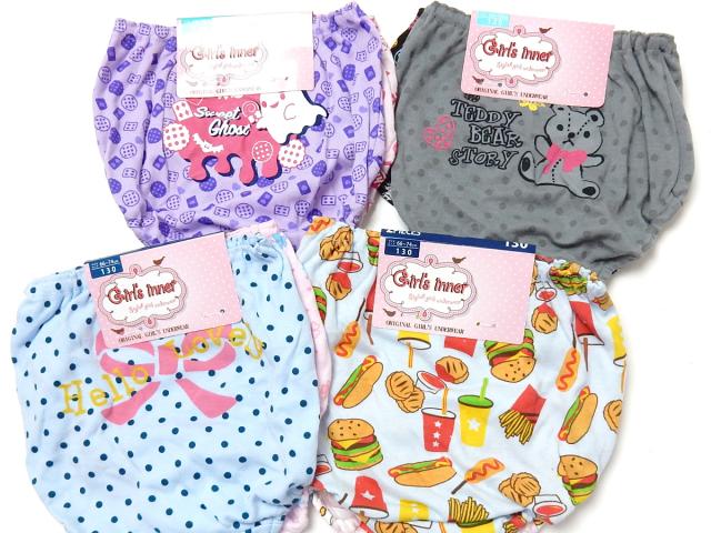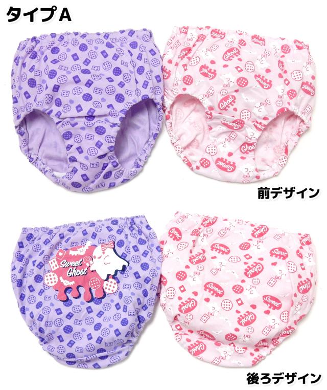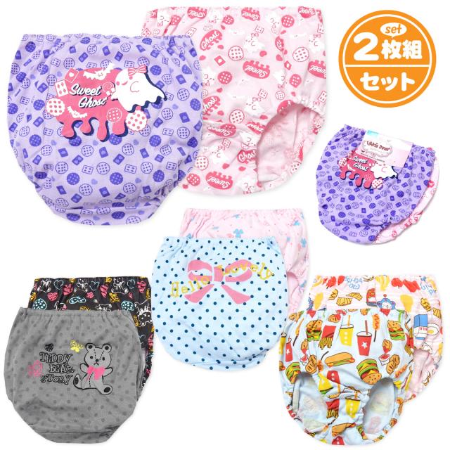 【送料無料】2枚組セット 女児 キッズ ショーツ 綿混 おばけ くま ドット ハンバーガー 下着 子供 女の子 yg-1465【メール便対応】