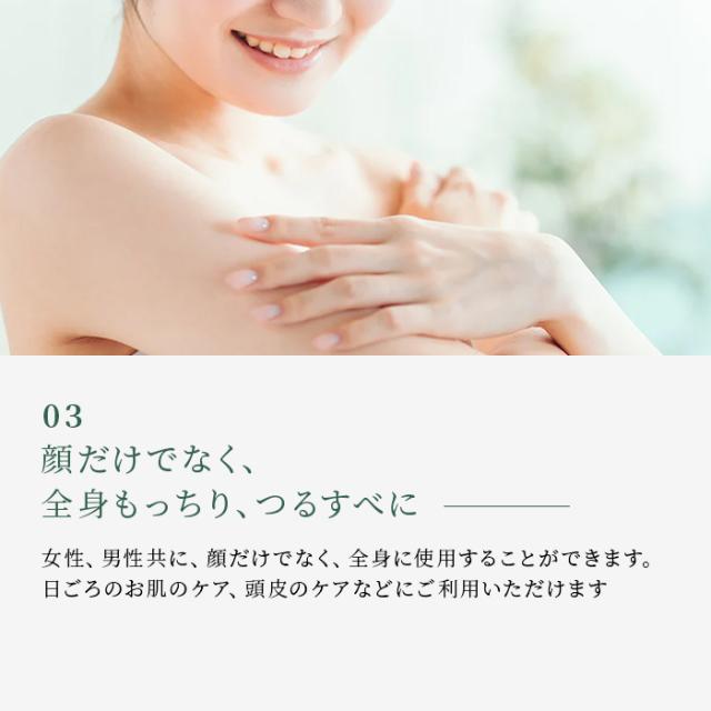 【ミネラルに富み、保湿、抑臭効果がある天然成分配合】フムスエキス、サジーオイル、フルボ酸、ヒアルロン酸など天然成分を贅沢に使用。キメの細かい泡による、オーガニック成分の浸透のサポートに重きを置きました
