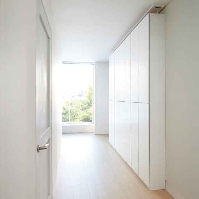 1.奥行24cm薄型収納庫は、廊下収納や狭い空間活用に。