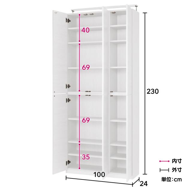 ■サイズ:幅100奥行24本体高さ230cm、天井対応高さ238〜250cm