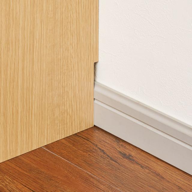 ◆効率よく本がしまえる、こだわりの固定棚の位置。◆壁にぴったり設置できるように幅木除け仕様。