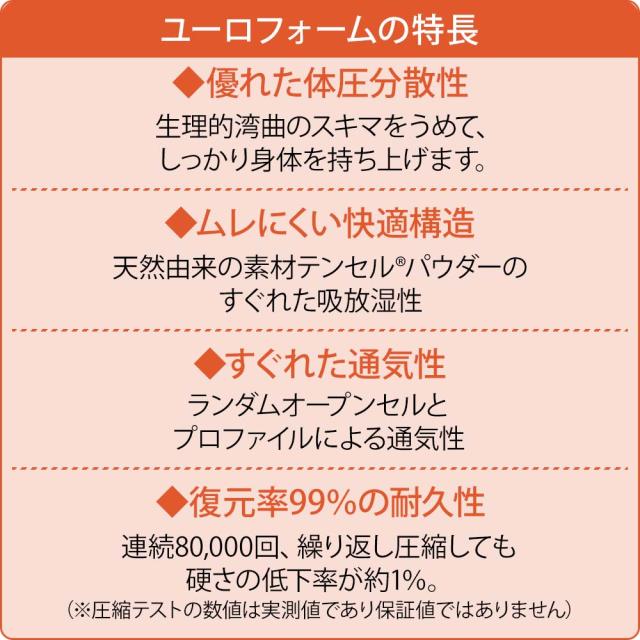 強くしなやかでへたりにくい東洋紡のブレスエアー®と、入眠時の快適な寝心地を考慮した柔らかなユーロフォームの合わせ技構造。