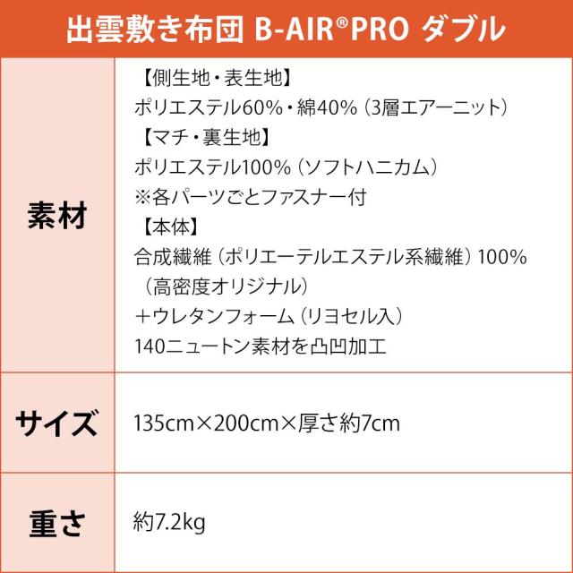 良質睡眠で最高のリフレッシュ 出雲敷き布団 B-AIR®PRO ダブル
