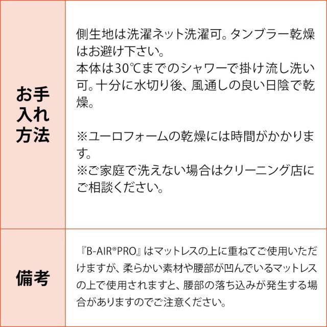 独自のダブルクッション構造『B-AIR®PRO』。 寝具のプロがこぞってお勧めする逸品です。