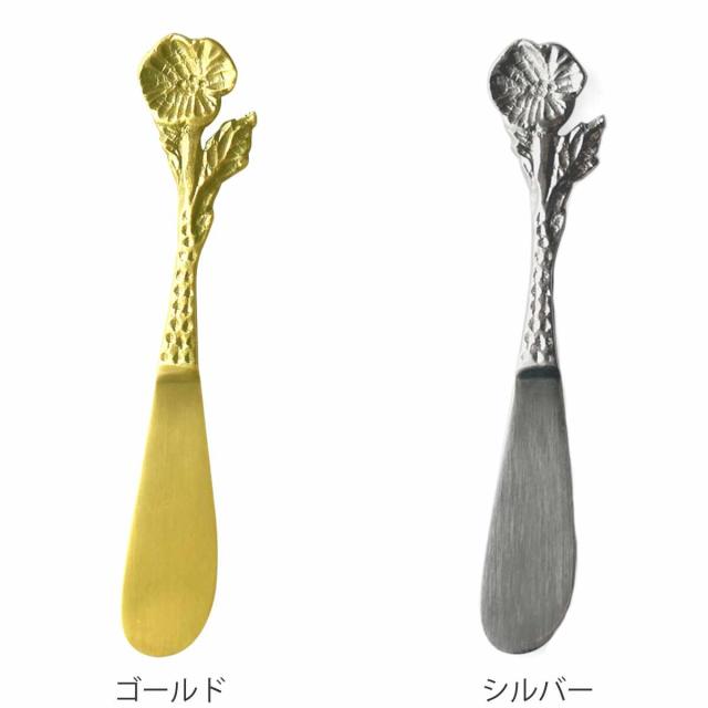バターナイフ 14cm ブラスカトラリー フラワー ポピー ブラス ( ナイフ カトラリー 洋食器 真鍮 レトロ アンティーク風 パン トースト ジャム バター マーガリン 朝食 キッチン用品 おしゃれ 花 )