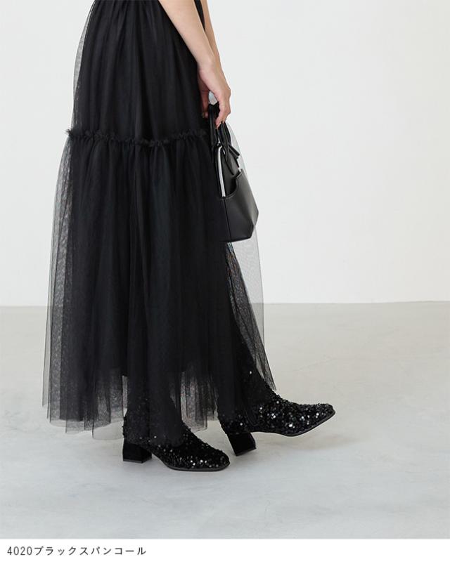 シンプルですっきりとしたシルエットに、ボリューミーな靴底×台形ヒールで今っぽい足元が完成。