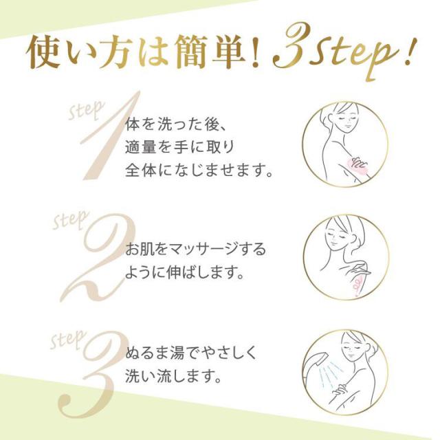 ・体を洗った後、適量を手に取り、円を描くようにやさしくマッサージした後、よくすすいで下さい。